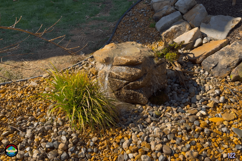 Decorative gravel, river rock, and driftwood accents create a natural, artistic finish. Completed in just one day, this small-scale feature proves how thoughtful design can make a big impact.